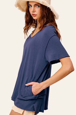 LaMiel Stretchy V-Neck Short Sleeve Top with Pockets