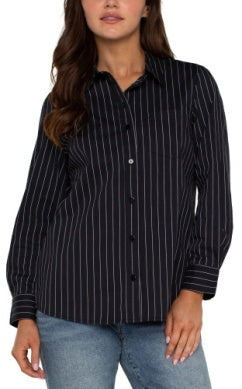 Liverpool Los Angeles Classic Button Front Poplin Shirt in Black & White Pinstripe