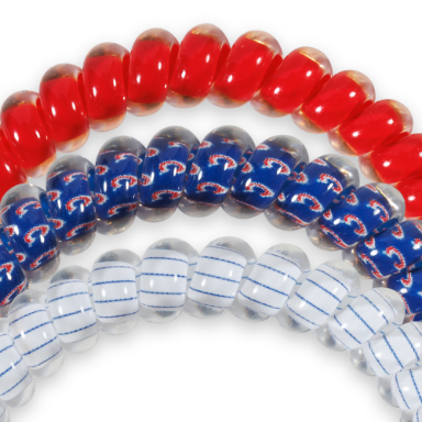 Chicago Cubs Small Hair Ties in Red, White and Blue offer a strong grip without damage, doubling as a chic wrist accessory when not in use. Your new favorite hair essentials all year round.